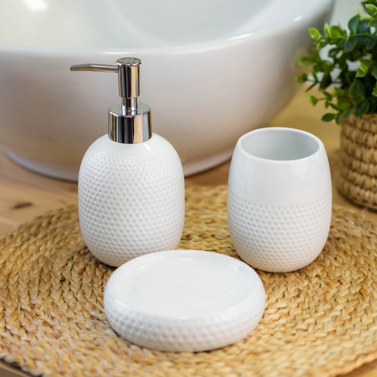 Керамический дозатор для жидкого мыла «Florida» − стильный и практичный аксессуар для ванной комнаты. Дозатор имеет обтекаемую форму и оригинальный дизайн с тактильными углублениями.
