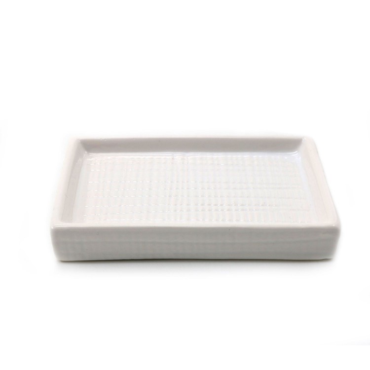 Керамическая мыльница для ванной «Пятый элемент» − стильный и практичный аксессуар для ванной комнаты. Мыльница прямоугольной формы отличается устойчивой основой и оригинальным дизайном с тактильными узорами.