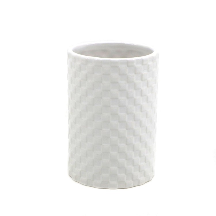 Керамический стакан для зубных щеток «Jasmine» − стильный и практичный аксессуар для ванной комнаты. Стакан отличается обтекаемой формой и тактильным шашечным узором.