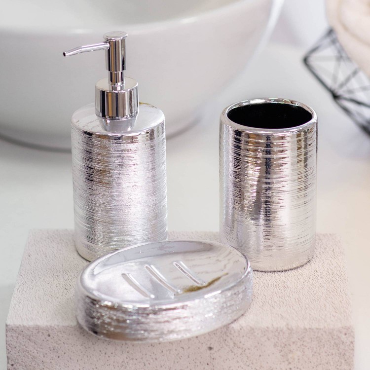 Стакан для щеток легко мыть, он не впитывает воду и устойчив к влаге. Серебристый цвет стакана будет радовать взгляд и поднимать настроение с самого утра.