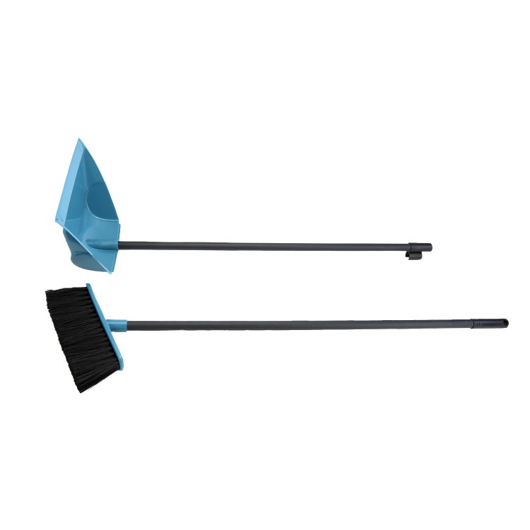Щетка для пола плотно набита пучками щетины. За счет специальных пазов щетка легко крепиться к совку с высокой ручкой. Щетина метлы расположена под углом: это позволяет захватывать максимальную площадь подметаемой поверхности. Ручки щетки и совка покрыты специальным материалом, чтобы руки не скользили во время уборки. Совок плотно прилегает к полу и не дает пылинкам попасть под него. На краях совка предусмотрены специальные зазубрины для легкого очищения щетки от мусора.