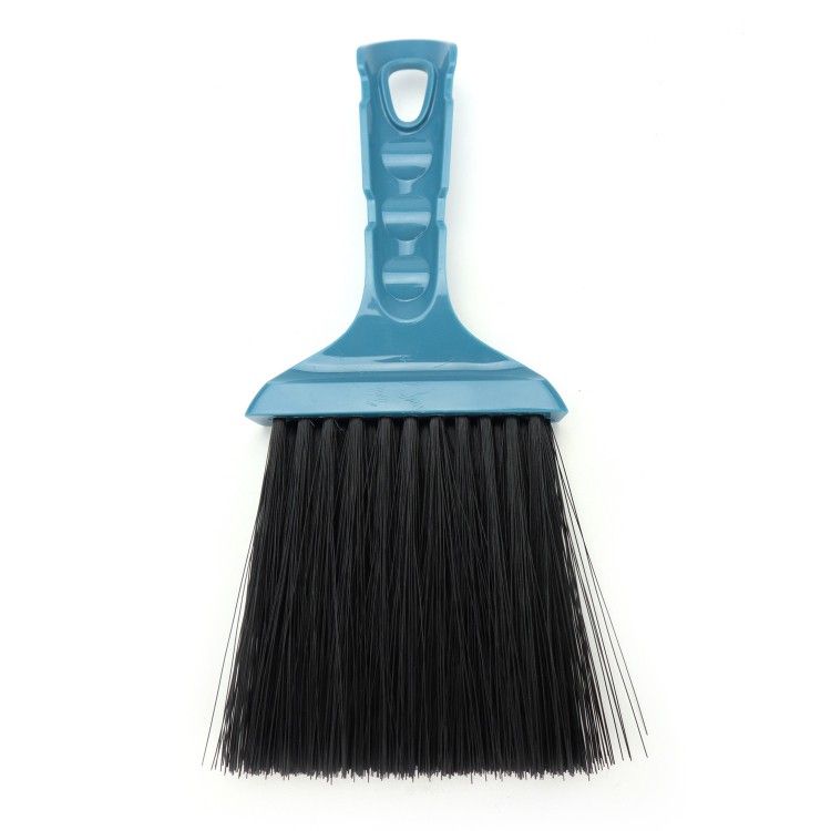 Метелка плотно набита пучками щетины. За счет специальных пазов щетка легко фиксируется на совке. Совок не сломается от надавливания и прослужит вам долго. На краю совка предусмотрены специальные зазубрины для легкого очищения щетки от мусора.