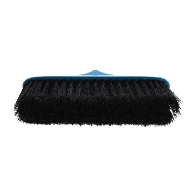 Щетина метлы расположена под углом: это позволяет захватывать максимальную площадь подметаемой поверхности. Щетка имеет оптимальную жесткость и густую щетину. Основание щетки изготовлено из прочного пластика, который не сломается от надавливания и прослужит вам долго.