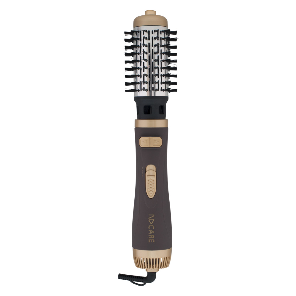 Фен-щетка NDCare Comb HB01 станет незаменимым для многих прекрасных женщин устройством, которое позволит им создавать оригинальные и стильные укладки без помощи профессионального парикмахера. Устройство имеет стильную расцветку корпуса, представленную коричневым цветом и дополненную конструктивными элементами бронзового цвета. Мощности 1200 Вт достаточно для быстрого создания объема или закручивания волос в изящные локоны. Чтобы не испортить волосы слишком агрессивной сушкой, вы можете выбрать наиболее оптимальный для вас режим работы фена-щетки из трех температурных режимов.