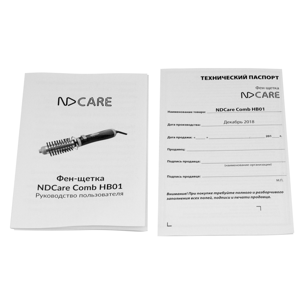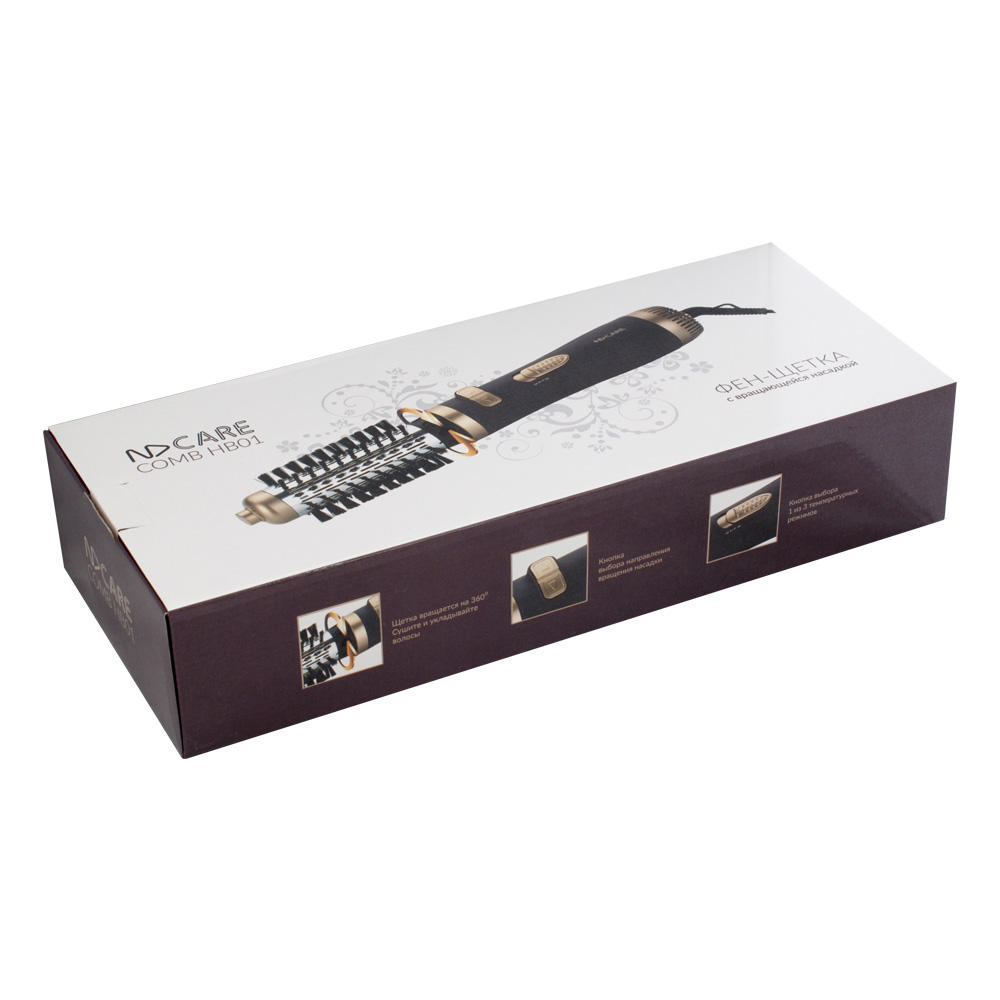 Комплект поставки NDCare Comb HB01 располагает двумя щетками диаметром 38 мм и 55 мм. Благодаря вращающейся щетке за одну процедуру фен не только высушивает волосы, но и создает укладку, придавая волосам нужную форму и объем. За счет вращающегося шнура у вас будет больше комфорта и свободы в процессе сушки волос. Еще одно достоинство данной модели — вращение насадки в обоих направлениях.