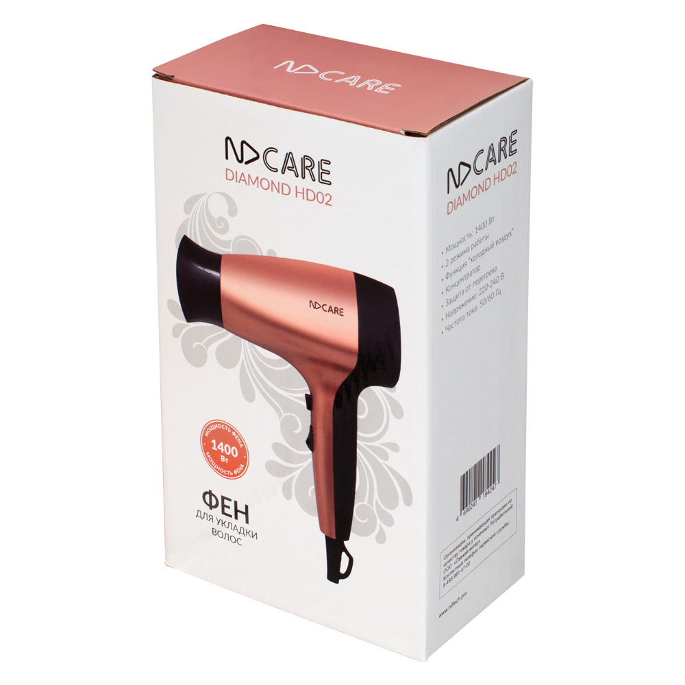 Фен для укладки волос NDCare Diamond HD02 сочетает в себе мощь, функциональность и стиль. Полноразмерный фен поддерживает подачу холодного воздуха, поэтому пользователь сможет воспользоваться режимом бережной сушки. Устройство имеет эффектную подсветку.