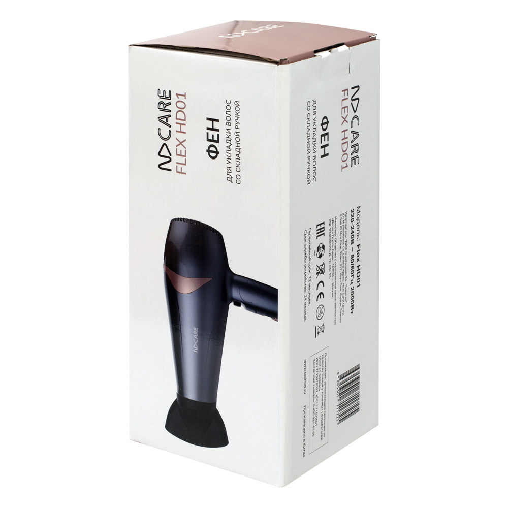 Компактный фен для укладки волос со складной ручкой NDCare Flex HD01 станет тем устройством, с которым вы не сможете расстаться. А все потому, что он сочетает в себе мощь, функциональность, стиль и компактность. Прибор выполнен в стильном корпусе с яркими вставками, что делает его привлекательным приспособлением. Компактный фен поддерживает подачу холодного воздуха, поэтому пользователь сможет воспользоваться режимом бережной сушки. Фен имеет два режима скорости и три температурных режима.