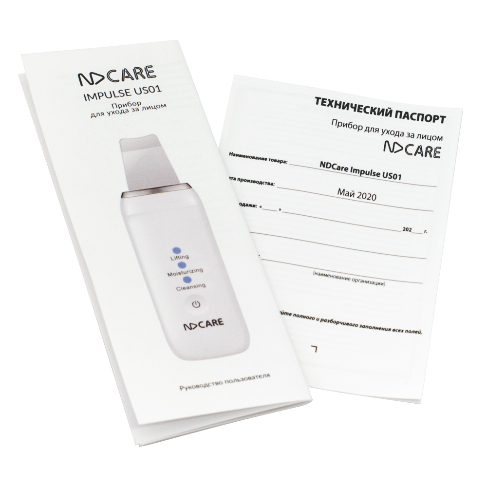 NDCare Impulse US01 - устройство предназначено для очищения кожи от омертвевших частиц, очищения пор, деликатной чистки и подготовки кожи к последующим косметическим процедурам.