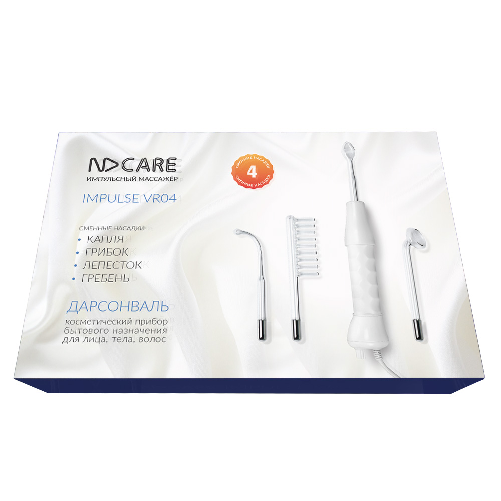 Импульсный массажер дарсонваль NDCare Impulse VR04 воздействие на ткани тела слабыми импульсными токами высокой частоты. Предназначен для ухода за кожей лица и тела, волосами и кожей головы. Процедуры с импульсным массажером NDCare Impulse VR04 избавят от таких проблем кожи, как сыпь, акне, воспаления и инфильтраты. Использование импульсного масажера NDCare Impulse VR04 способствует улучшению тургора увядающей кожи, уменьшает морщины, улучшает цвет лица. Успешно используется для стимуляции роста волос.