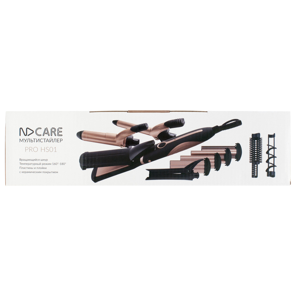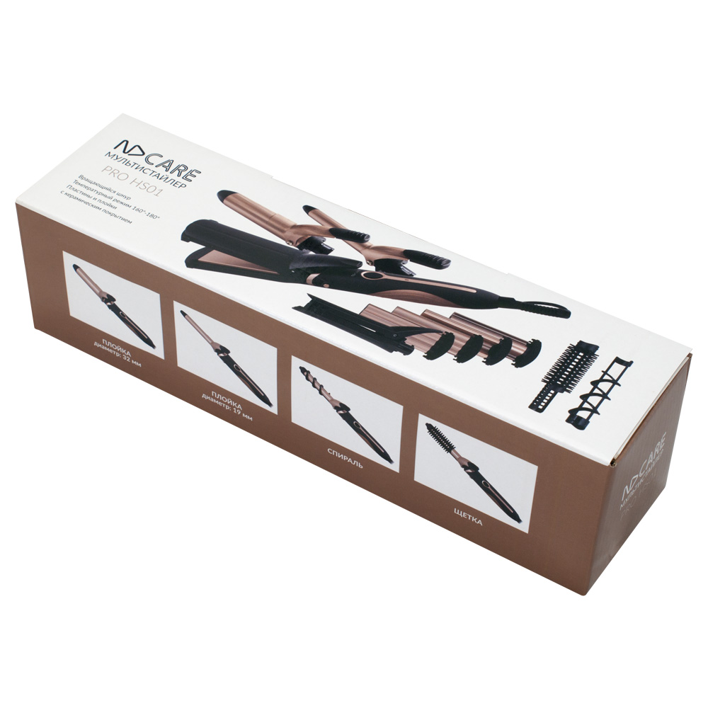 Мультистайлер NDCare Pro HS01 должен присутствовать в арсенале каждой девушки, которая хочет, чтобы ее сегодняшний облик не был похож на вчерашний. Модель сочетает в себе функционал выпрямителя для волос, щипцов для завивки и создания волн-гофре. Именно такие манипуляции с вашими волосами вы сможете проводить при помощи представленного устройства. Стильная окраска корпуса прибора, сочетающая черный и золотистый цвета, придется по вкусу многим девушкам. Мощности 50 Вт вполне достаточно, чтобы вы тратили на создание укладки минимум времени. Мультистайлер NDCare Pro HS01 будет готов к работе уже спустя 60 секунд после его подключения к электросети. Имеющее один температурный режим устройство оборудовано насадками с керамическим покрытием, чтобы ваши волосы не пострадали в процессе укладки. Нагрев пластин производится до температуры 180 градусов. Входящие в комплект насадки для завивки имеют диаметр 32 мм и 19 мм, благодаря чему вы сможете создать крупные и мелкие кудряшки.