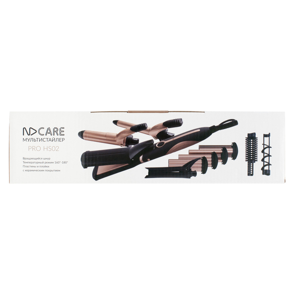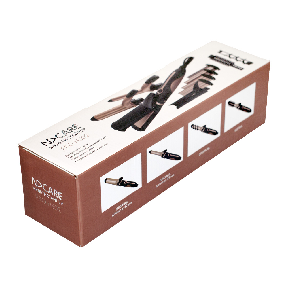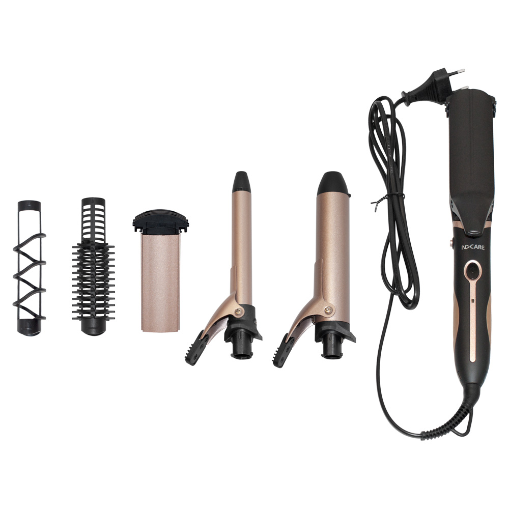 Мультистайлер NDCare Pro HS02 должен присутствовать в арсенале каждой девушки, которая хочет, чтобы ее сегодняшний облик не был похож на вчерашний. Модель сочетает в себе функционал выпрямителя для волос, щипцов для завивки и создания волн-гофре. Именно такие манипуляции с вашими волосами вы сможете проводить при помощи представленного устройства. Стильная окраска корпуса прибора, сочетающая черный и золотистый цвета, придется по вкусу многим девушкам. Мощности 50 Вт вполне достаточно, чтобы вы тратили на создание укладки минимум времени. Мультистайлер NDCare Pro HS02 будет готов к работе уже спустя 60 секунд после его подключения к электросети. Имеющее один температурный режим устройство оборудовано насадками с керамическим покрытием, чтобы ваши волосы не пострадали в процессе укладки. Нагрев пластин производится до температуры 180 градусов. Входящие в комплект насадки для завивки имеют диаметр 32 мм и 19 мм, благодаря чему вы сможете создать крупные и мелкие кудряшки.