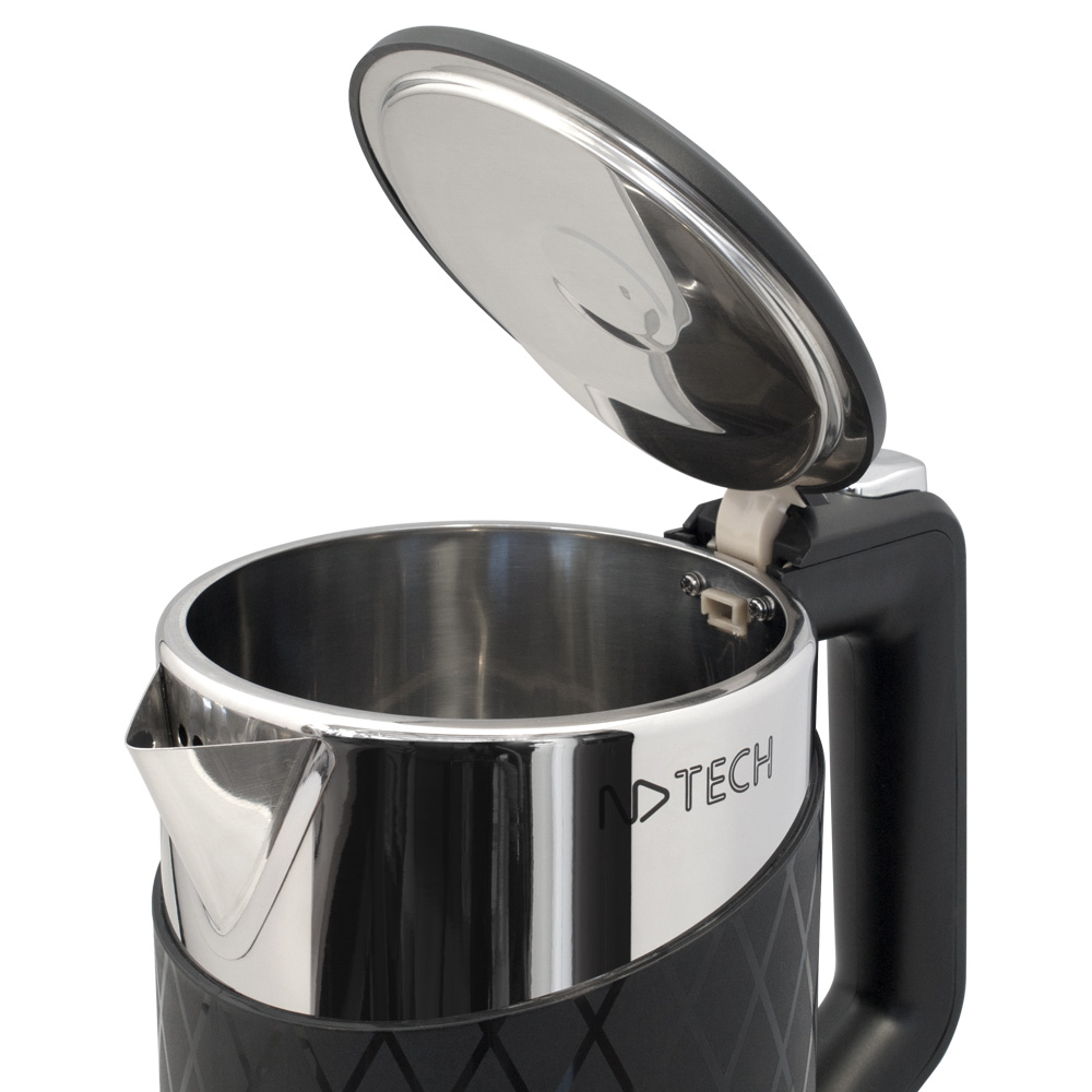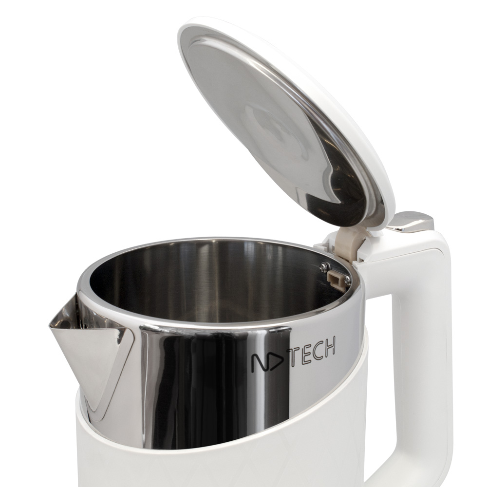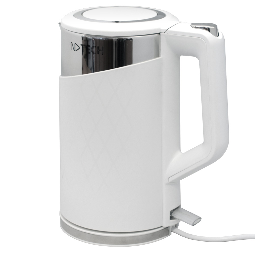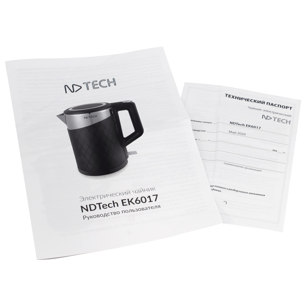 Электрочайник NDTech EK6017 поможет вскипятить воду, приготовить чай или кофе. Он изготовлен с применением качественных компонентов. Модель надежная, способна прослужить вам в течение длительного времени. Электрочайник NDTech EK6017 имеет мощность 1800 Вт. Объем чайника оптимальный – 2 литра. Можно вскипятить большое количество воды. Корпус изготовлен с применением нержавеющей стали и пластика. Металл не покрывается следами ржавчины при эксплуатации. Нагревательный элемент установлен внутри конструкции. Он скрытого типа, защищен от внешних воздействий.