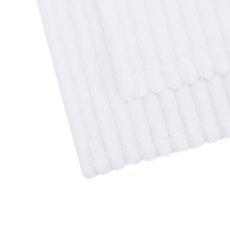 Однотонный плед изготовлен из нежной и бархатистой ткани белоснежного цвета с ярко выраженным жаккардовым рисунком в виде полос. Ткань напоминает микрофибру, но более плотную и устойчивую к негативным факторам внешней среды. Материал имеет «дышащую» структуру, пропускает излишки влаги и сохраняет тепло. Нежный домашний текстиль гипоаллергенный и безопасный. В состав изделия входят искусственные волокна, которые не дают пледу измяться и помогают держать форму после стирки. Ворс не осыпается и не скатывается, не липнет к одежде и обивке мебели. Густота и равномерность ворса не меняется со временем, а насыщенный цвет пледа не выцветает после многократных стирок. Вы можете использовать плед велсофт как накидку на кресло, кушетку или диван, покрывало на взрослую и детскую кровать.